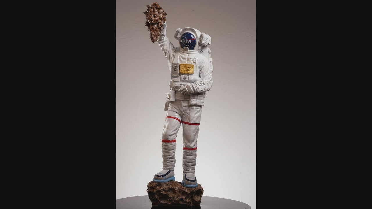 This one-of-a-kind bust is inspired by the classic tale of Medusa and the innovative science of space travel. This design features a typical NASA astronaut with impressive spacesuit details. The spaceman raises Medusa’s head, taking Pereus’ place in the classic story.